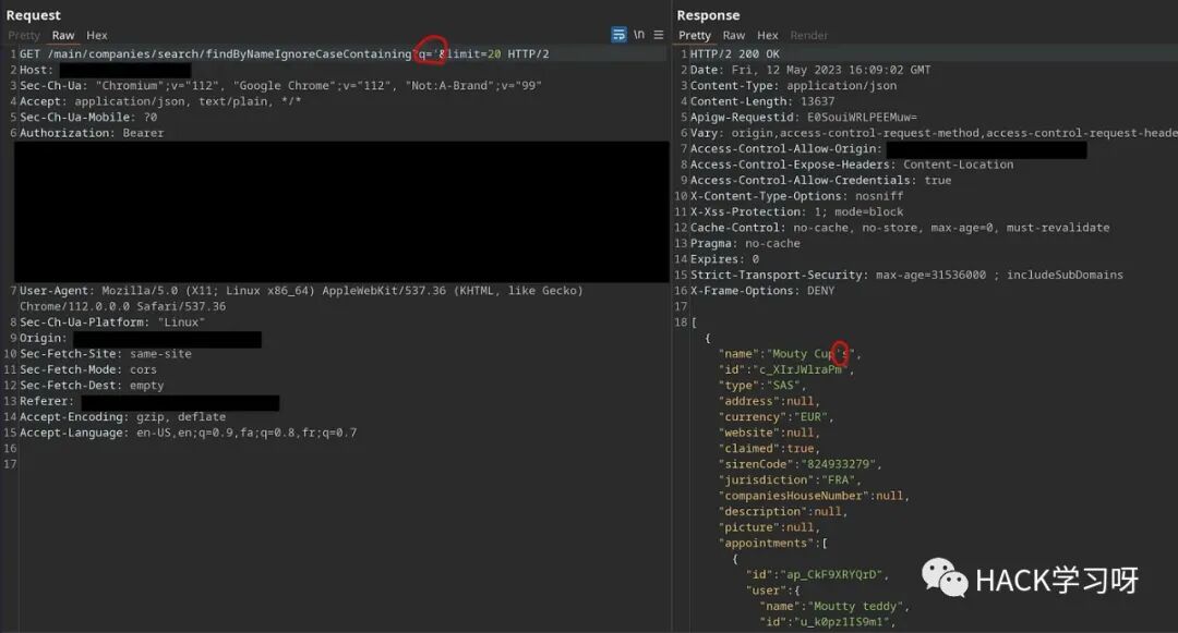 该网站的一项功能允许用户根据公司名称搜索公司。搜索后,将返回包含搜索词的最多 20 家公司的列表。然而,仔细检查后,我注意到创建每个公司的人的用户 ID 也包含在搜索结果中。这带来了重大的安全风险,我决定进一步挖掘。