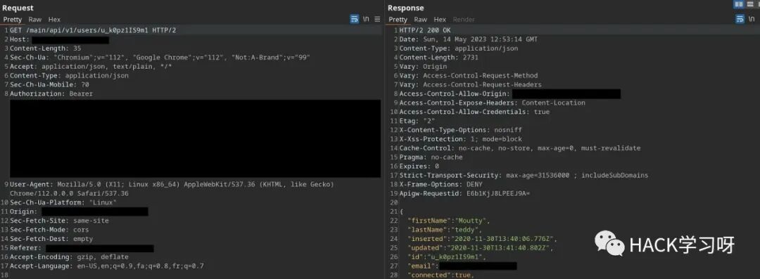 由于站点上有两个用户,我决定使用一个返回用户信息的端点来测试站点的访问控制,以查看一个用户是否可以访问另一个用户的信息。我获取了另一个用户的 ID 并输入了它,急切地想看看会发生什么。