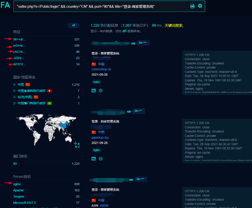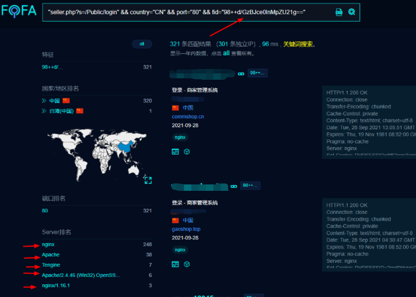 然后我开始研究fofa语法,我把每个特征以及服务器的语句都加上