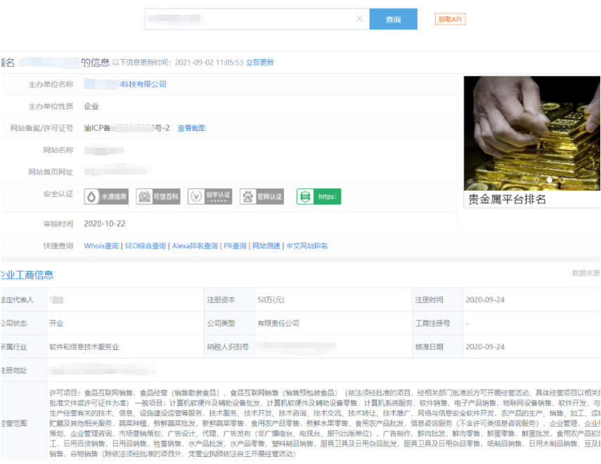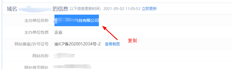 根据备案信息进行填写,如果信息隐藏就点开爱企查查找详细信息