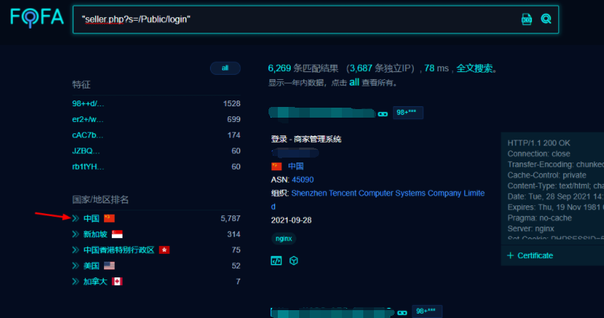 利用fofa搜索”seller.php?s=/Public/login” && country=”CN”之后呢发现很多网址都是IP显示的,对我不是很友好,点进去经常是连接不是私密,我就被劝退了,没有挖这样的洞洞
