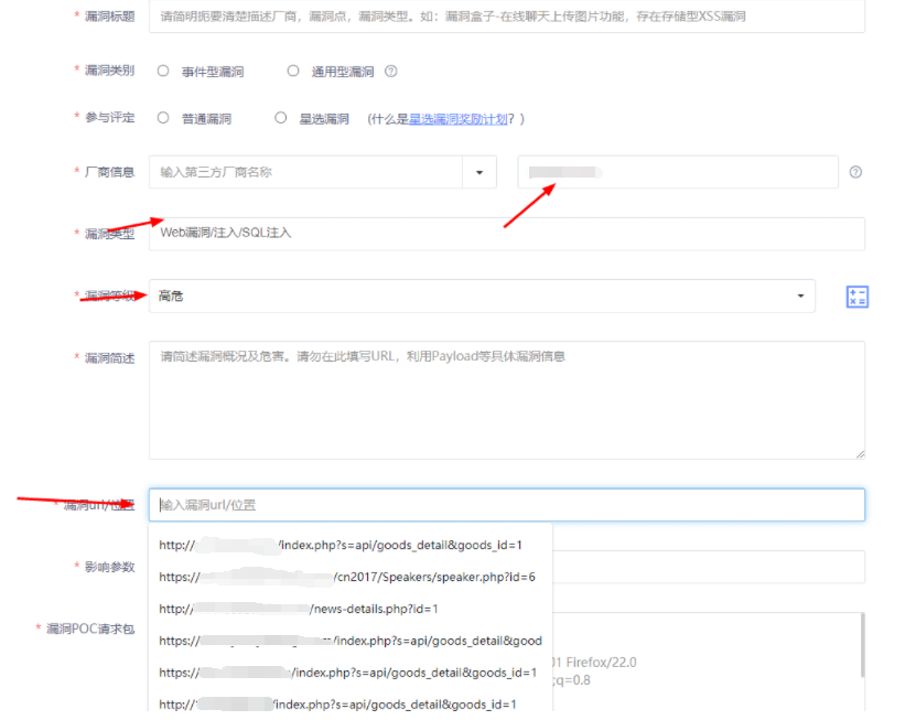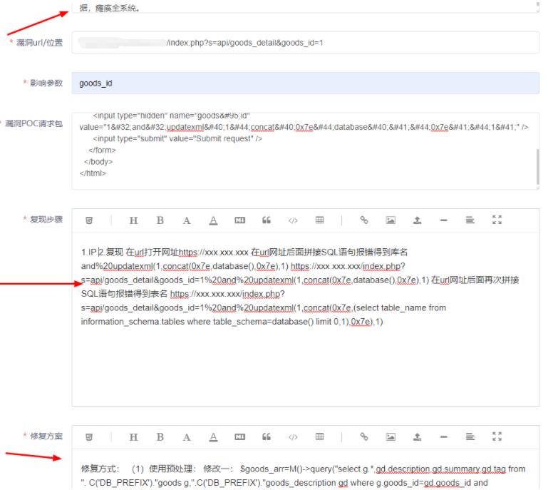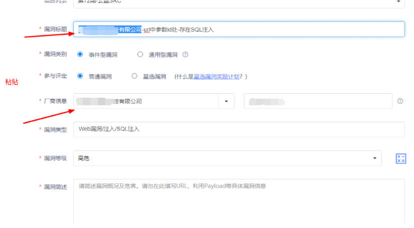将漏洞简述、漏洞POC请求包、复现步骤、修复方案一一粘贴。10秒