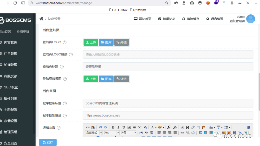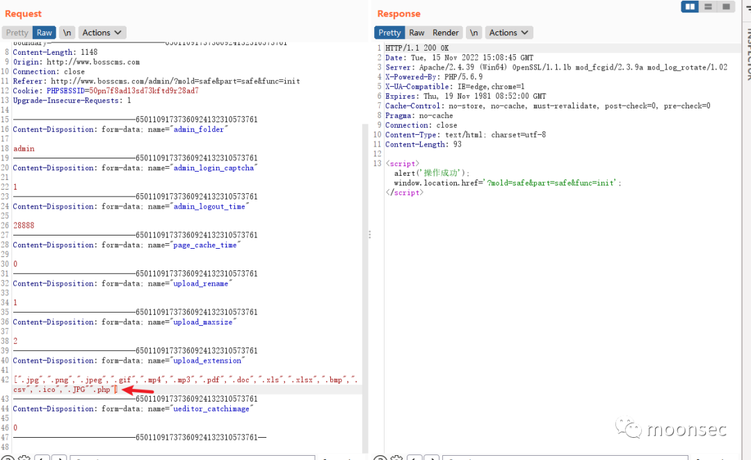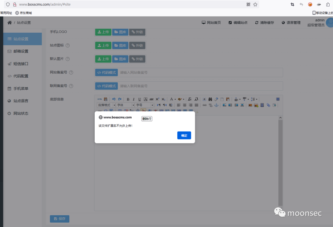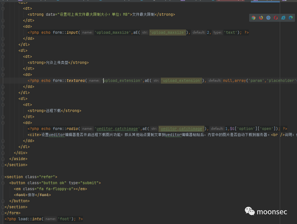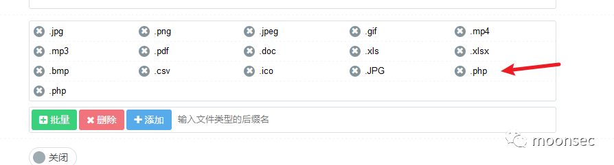 我们在后台查看功能点的时候,发现一处可以编辑上传类型的地方,这里添加一个允许上传后缀.php,