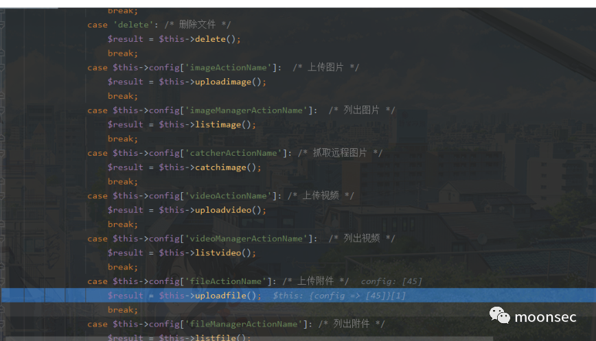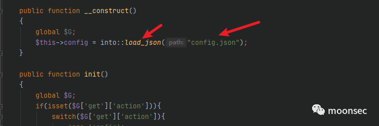 uploadimage ,分支的选择是通过读取config[]来进行选择的,config的内容是从哪里获取的在类的最上面通过 __construct() 调用 load_json() 方法进行 config 内容的获取,跟进load_json()