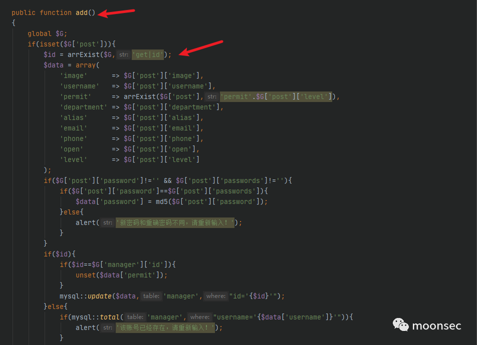 其中的add,edit,delete三个函数参数都是由请求获得的(可控的)