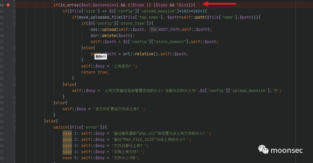 足。向上追溯我们发现这里需要满足两个条件:in_array($ext,$extension) , (!$type || ($type
