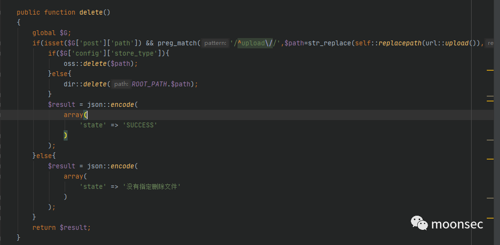 我们继续查看ueditor.class.php文件时发现该文件下还存在一个delete()方法,这个是编辑