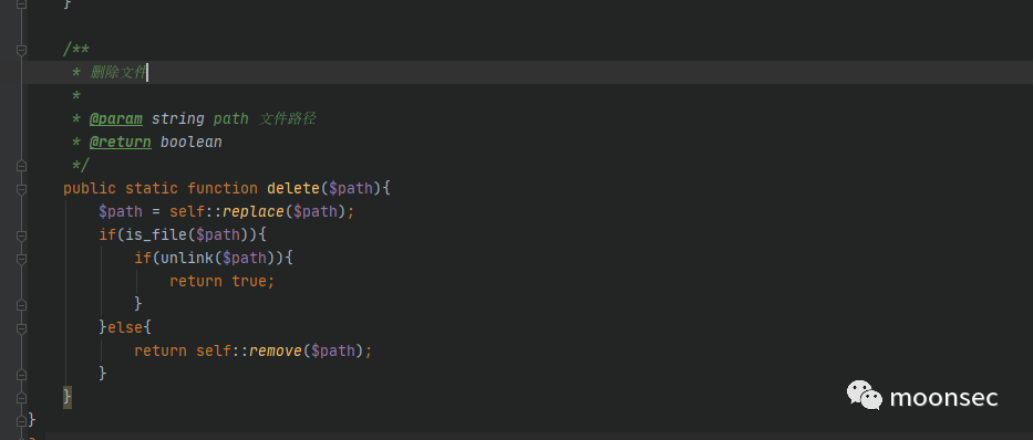 通过全局搜索store_type发现该处功能为设置存储方式,默认为0,所以上面默认会走dir类下的delete()方法。