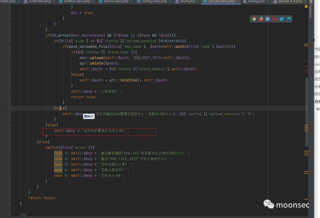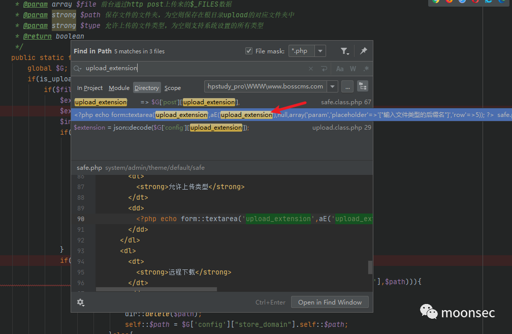 全局搜索 upload_extension 可以发现该处正是我们上面通过自定义设置的.php后缀,所以