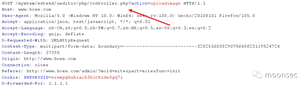 code下包含我们想要上传的.php后缀。所以此处功能点满足上面的两个条件可以实现任意文件上传。