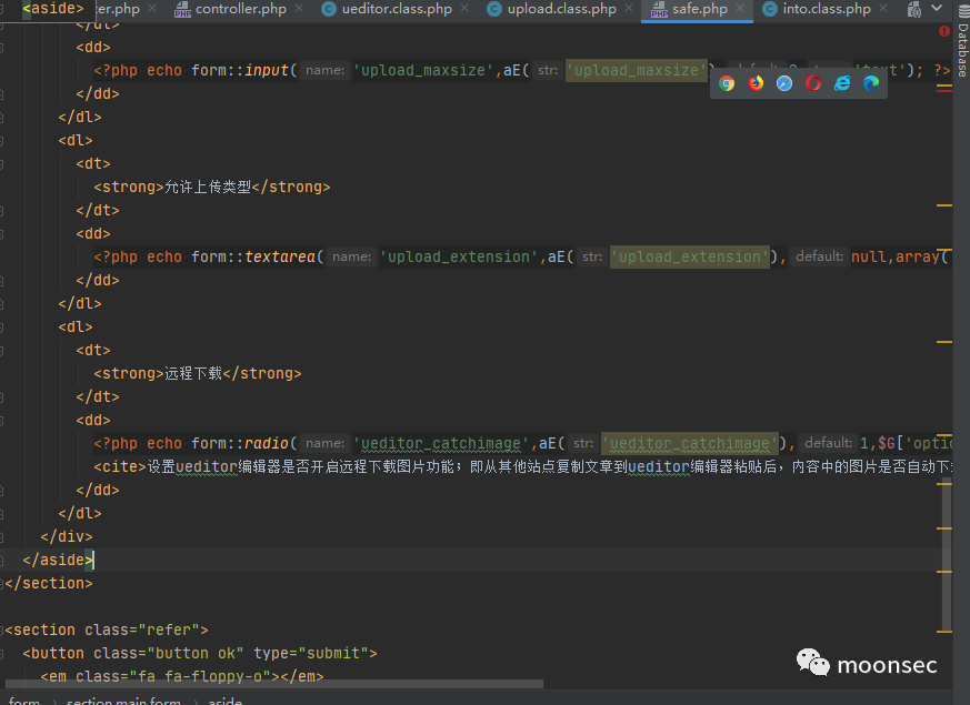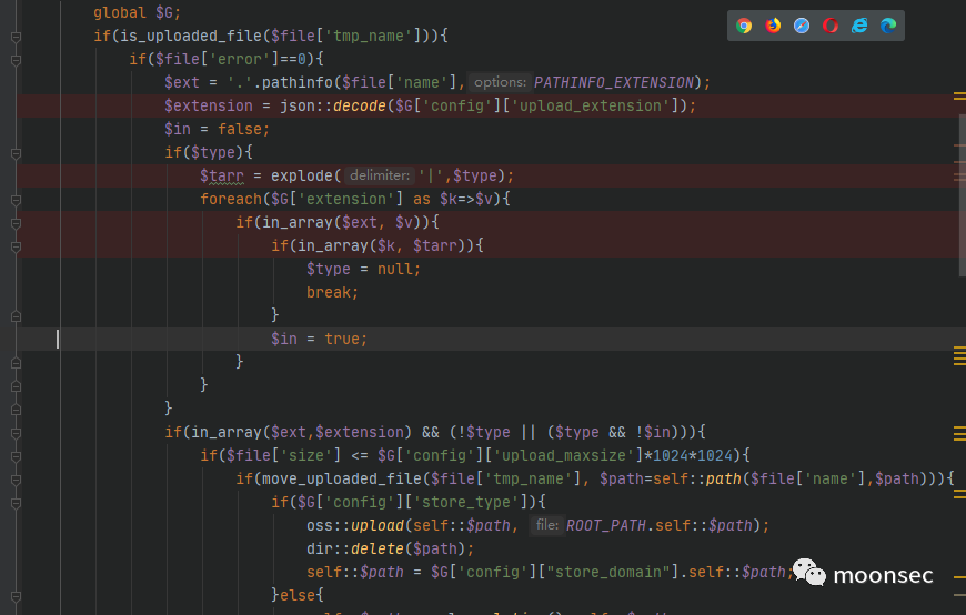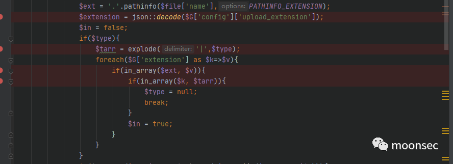 && !$in) 。我们首先去看第一个条件 $ext 在 $extension 数组中,我们继续向上追溯从这里我们发现 $ext 是获取我们上传的后缀名,而这里的 $extension 是从哪里获取到的呢