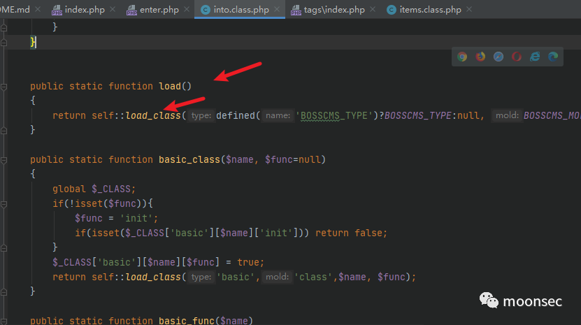 在该文件中依旧定义了一些常量,在最后包含了into.class.php文件并调用了 into 类下的 load() 方
