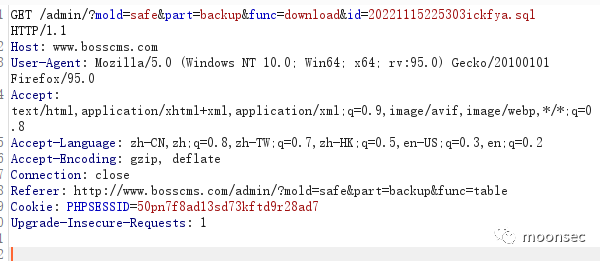 在测试功能点的时候我们发现 安全设置- 数据备份- 备份列表- 下载处存在一处任意文件下载,我们抓包去分析该处下载功能点。