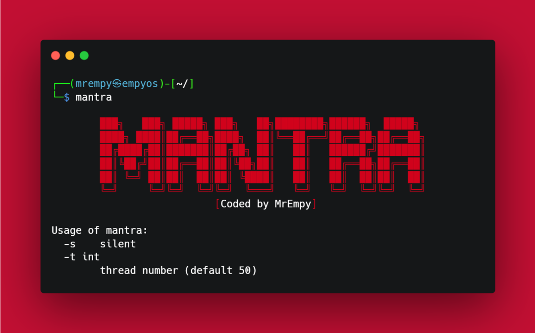 它的工作原理是检查网页和脚本文件的源代码,以查找与API密钥相同或相似的字符串。这些密钥通常用于对第三方API等在线服务进行身份验证,并且是机密的,不应公开共享。0X01 Mantra工具获取吧关注微