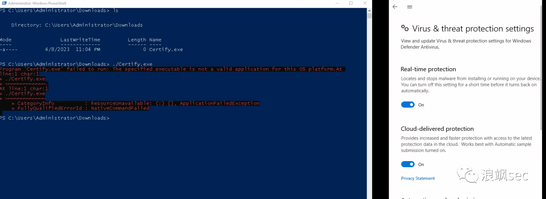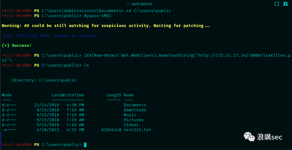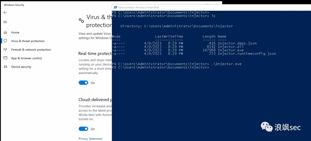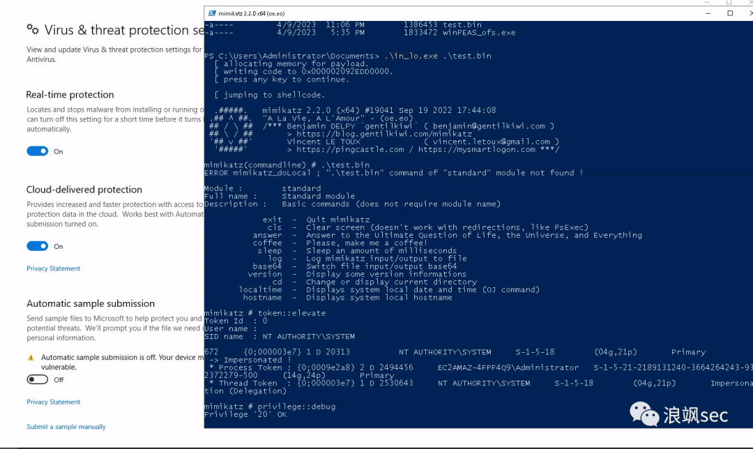 而且,正如我们所看到的,它工作了,Defender没有静态地停止二进制文件,也没有在运行时停止,允许我们为进程远程修补AMSI。