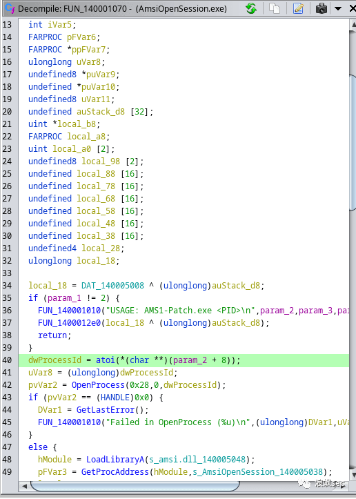 这看起来很容易分析和理解它的行为(在这种情况下通过AMSIOpenSession修补AMSI)。