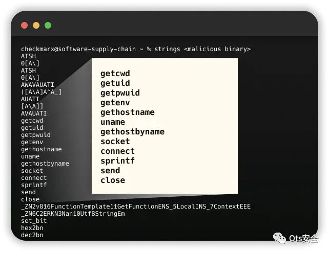 恶意 .node 文件——本质上是一个 C/C++ 编译的二进制文件——可以在 JavaScript 应用程序中调用,桥接 JavaScript 和本机 C/C++ 库。这允许 Node.js 模块利用更高性能的低级代码,并为潜在的恶意活动打开一个新的攻击面。