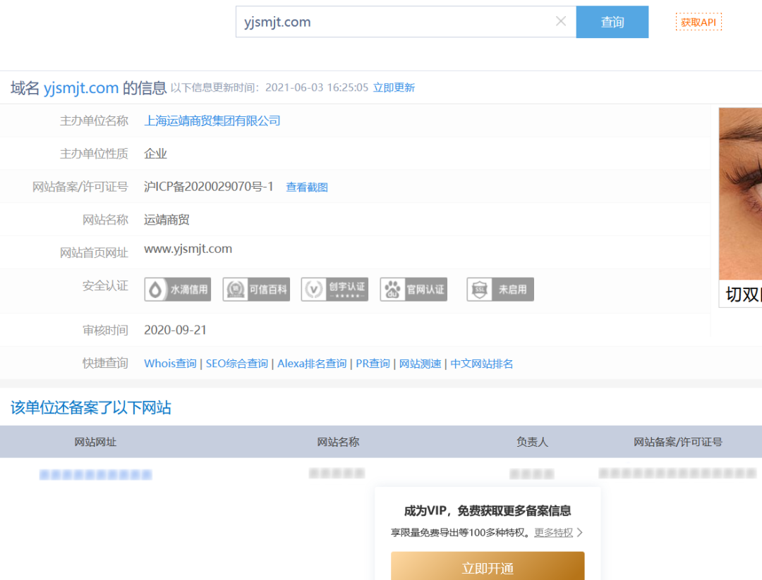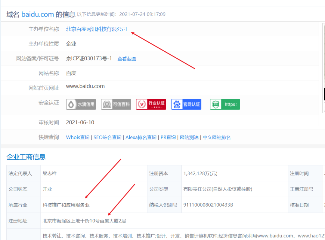 如果站长工具里面 查出来的官网打不开,就爱企查,这里也有一个官网。