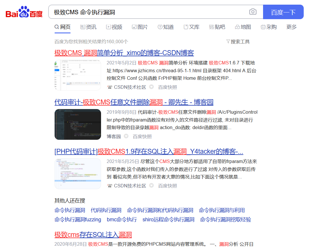 百度或者漏洞库,百度效率比较低,一般使用漏洞库,目前接触到的漏洞库有peiqi文库、白阁文库等。甚至可以上cnvd上找。