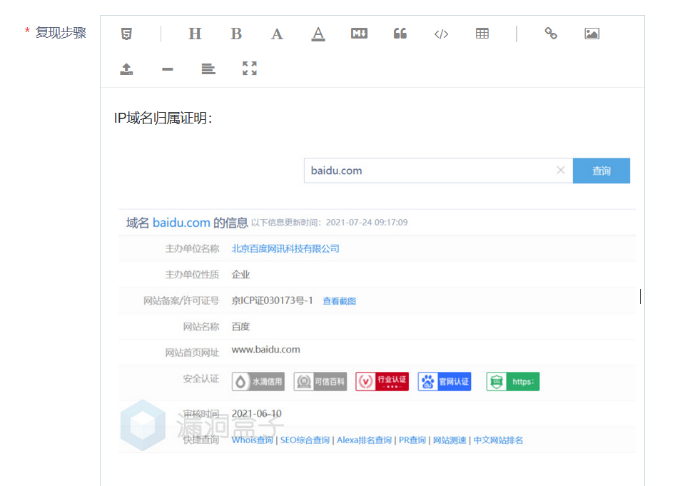 我看很多人,漏洞正文只有文字 没有图片,很简陋,我们最好加上图片,审核员看的舒服一点,心情好点,对我们有好处。