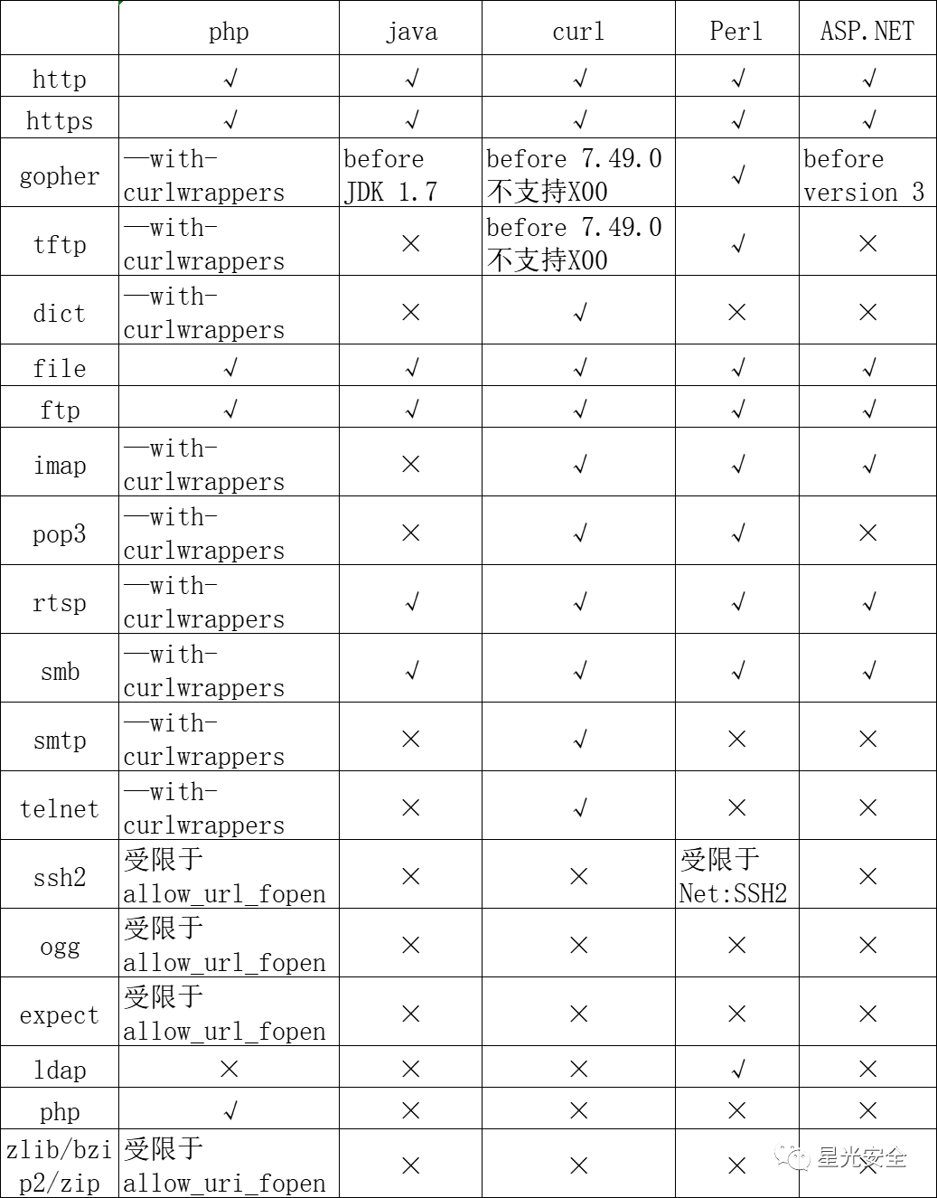 远程包含漏洞还可以结合伪协议去进行利用(伪协议是一种特殊的URL协议,它不是真正的网络协议,而是被用于访问本地文件系统或执行特定的操作。),先来了解一下各种脚本语言支持的伪协议,因为文件包含漏洞的产生和脚本语言没有关系,所以他不止是发生在php脚本语言中,他也有可能在JAVA,curl脚本语言中产生 以下就是各种脚本支持的协议情况