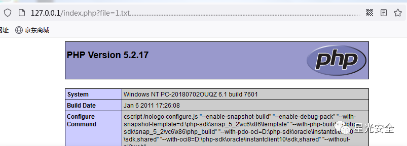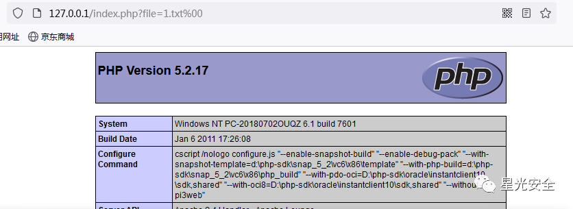 如图所示,在我们增加了%00截断,他也是可以进行一个解析,当然这种方法也是有限制条件的,php版本必须得低于5.3以下,magic_quotes_gpc=off(其处于关闭状态),当然我们也可以使用长度截断,在1.txt后面一直加......或者是./././等等进行绕过。