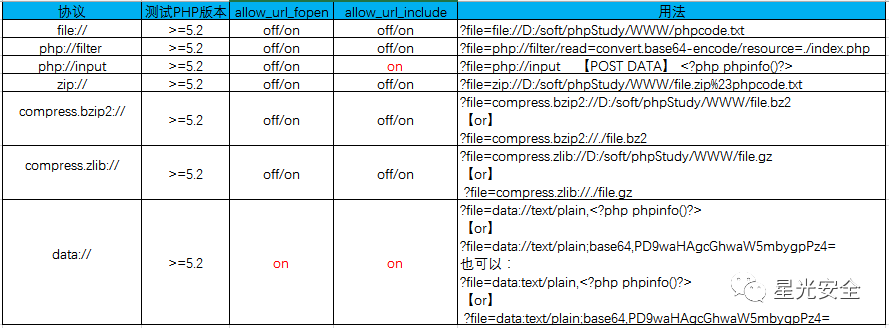 以上就是文件包含漏洞所有的内容,通过以上的介绍,我们可以看出文件包含漏洞利用难度,也可以根据他的原理提出修复建议:1、可以限制用户访问文件的权限;2、include函数中的参数用户是否可控,如果可控,则要限制;3、增加过滤,对用户输入的敏感参数进行过滤;4、配置文件中不必要开的参数设置为OFF等等,希望本文能对你有所帮助,星光安全面向基础