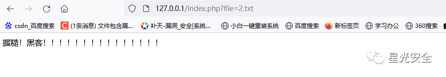 看到这里其实你应该思考到了这个漏洞的危害,当我们包含的文件中不是php代码,而是一些内容,那么他将会把其中的内容进行读取。我们创建一个2.txt文件,文件中写入一些内容,然后访问