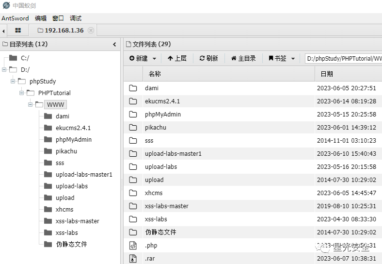 如图所示,,也是可以将其中的代码进行解析的(握草,C盘内容不保),当然,有些人直接将phpstudy安装在了C盘,不需要跨盘,直接就可以访问。