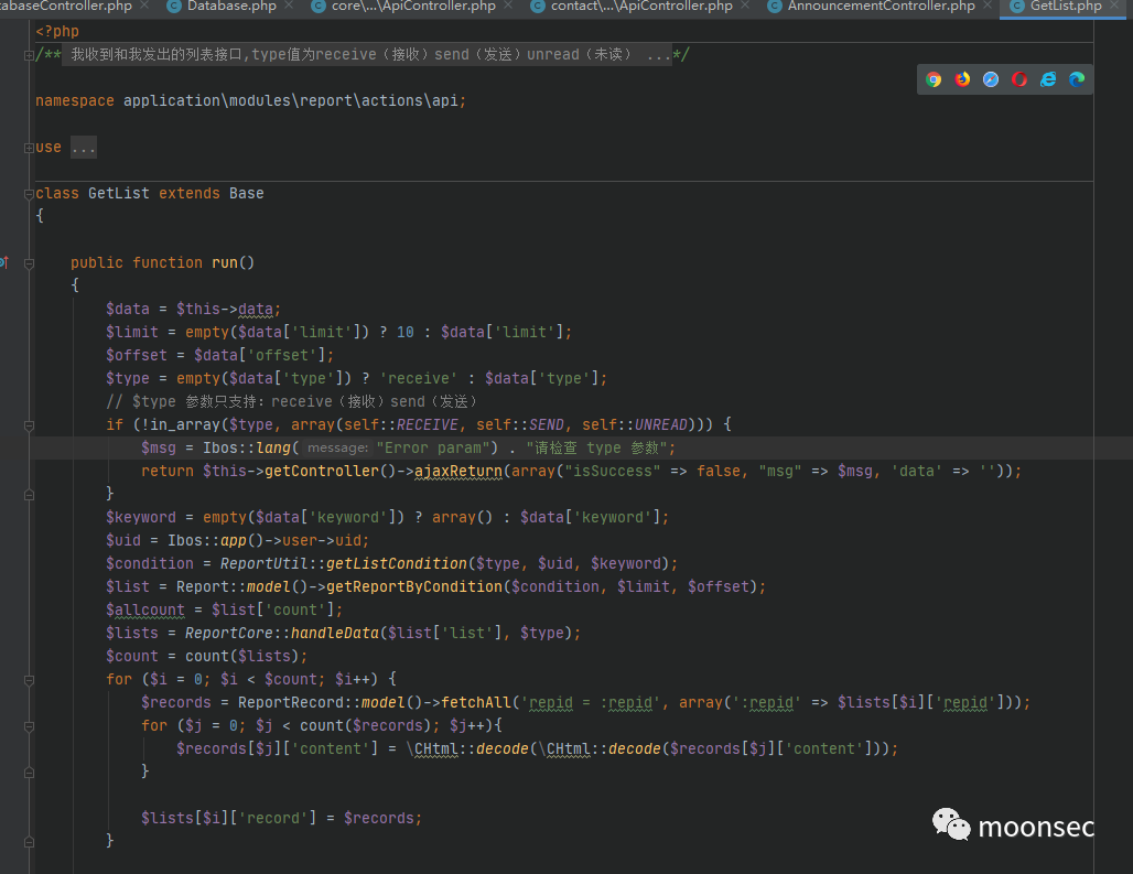 功能点通过Api控制器调用了module层的 GetList 类,我们跟进该类进行查看