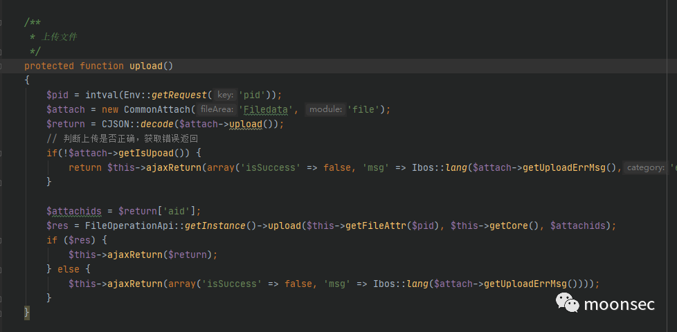 接着来看upload()方法,在该方法中调用了CommonAttach() 类下的方法,该类下封装了所有用于上传的方法。