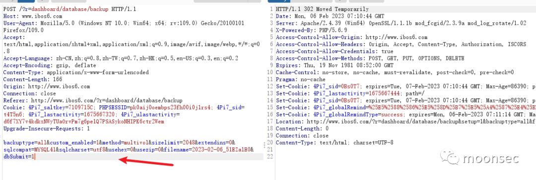 而在else分支中 $backupFileName 经过拼接传递到了 $dumpFile 参数中.