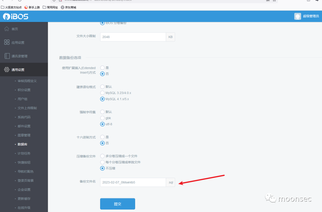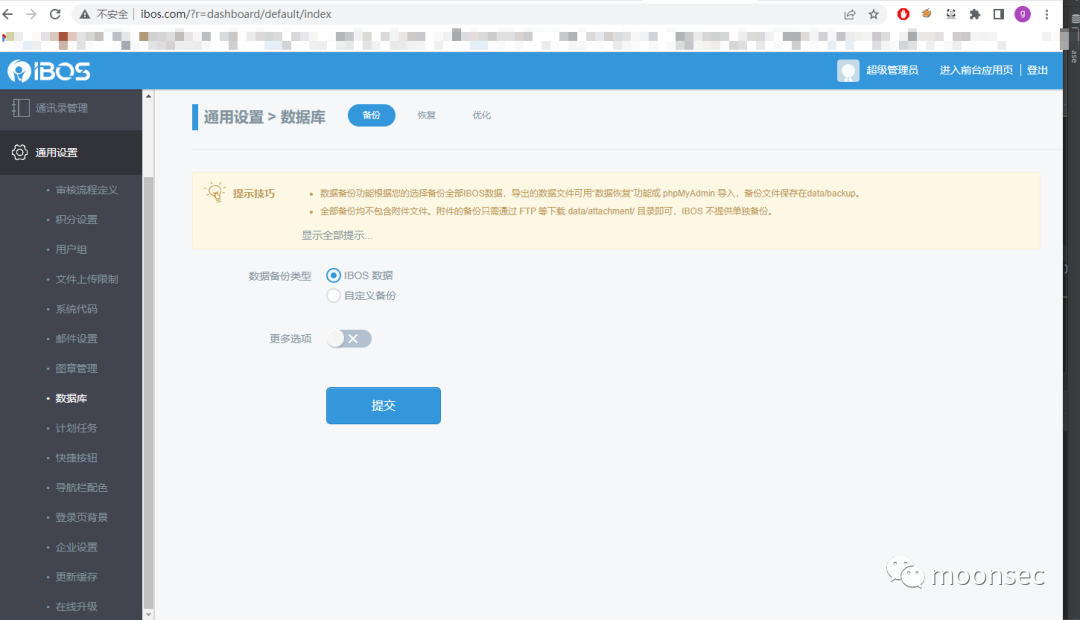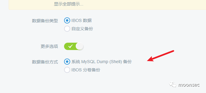 在进行功能点测试的时候发现该系统管理后台存在一个数据库备份的功能点,然后进入更多选项功能处。