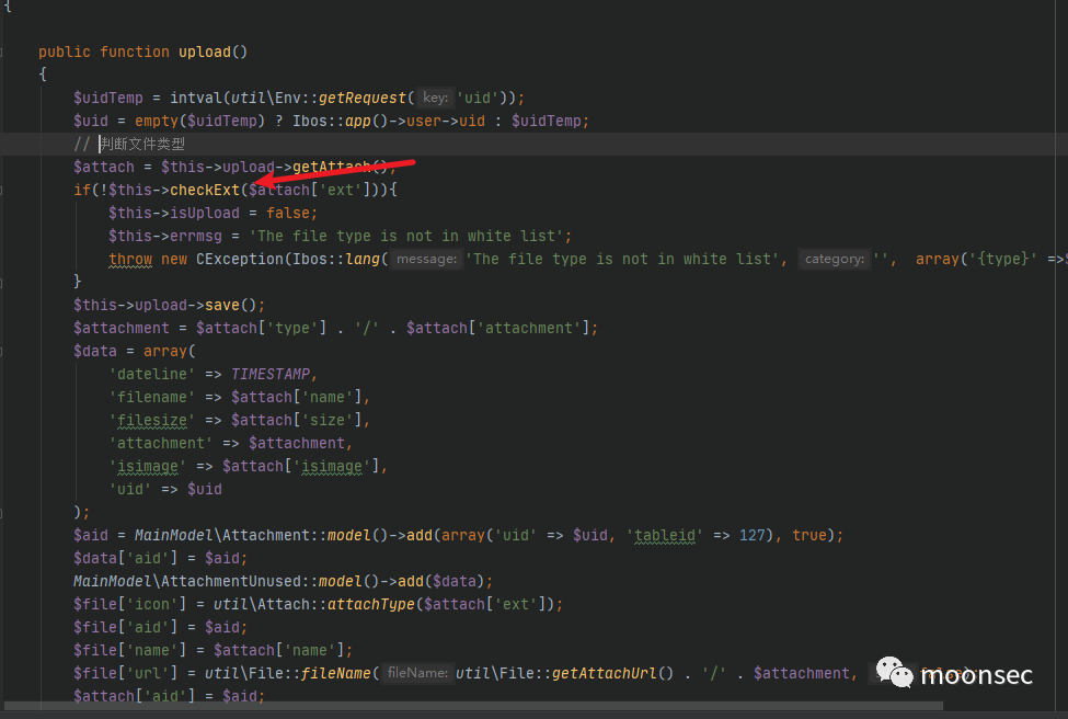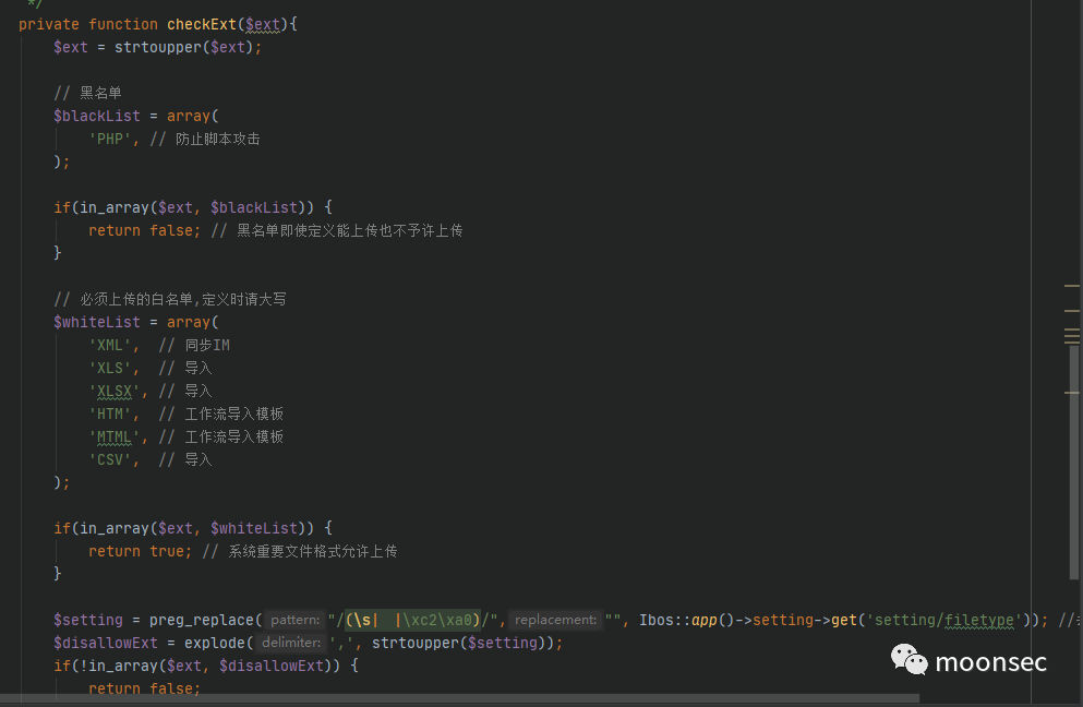 在通过上传方法中28行的 chechExt() 方法就是另一处过滤的地方。