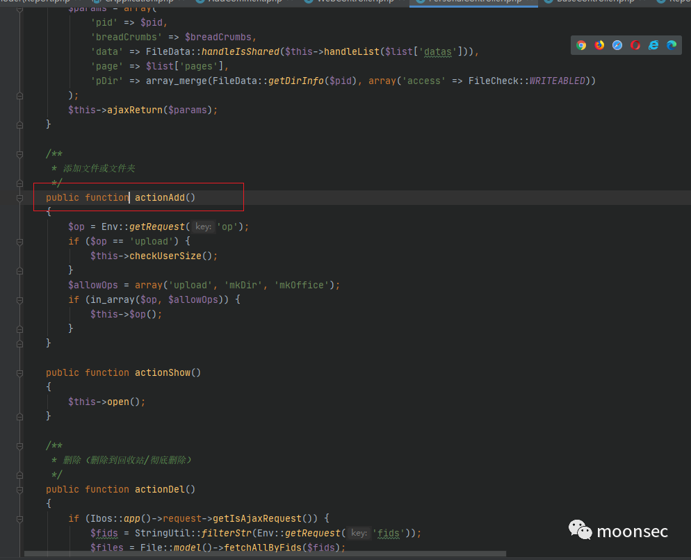 通过路由发现该处调用了 actionAjaxEnt() 方法并接收一个op参数进行功能的选择。
