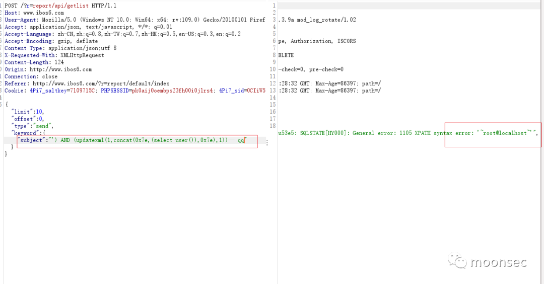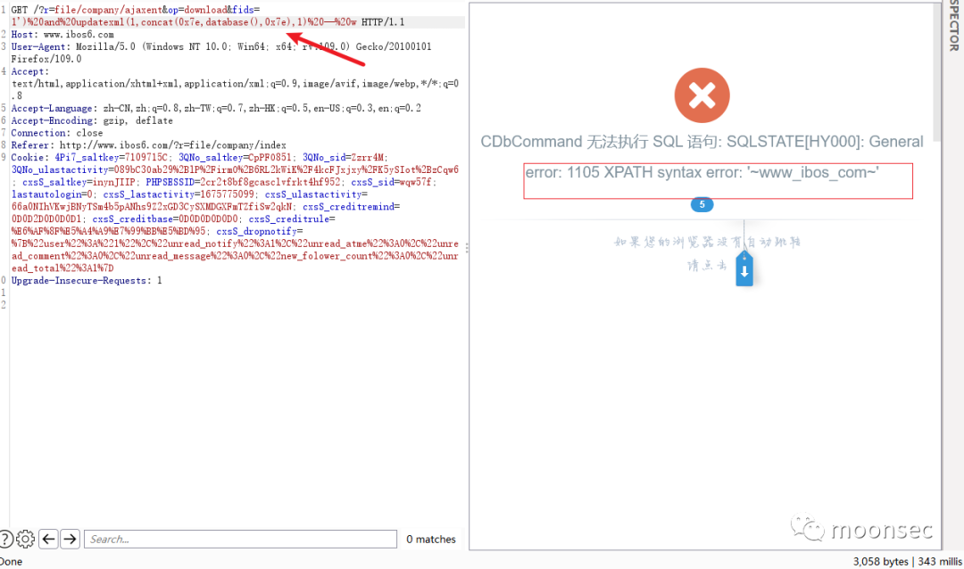 在fied参数后面,输入sql注入的payload,成功注入出数据库名。