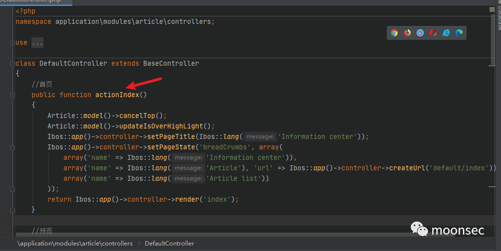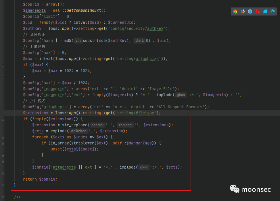 发现这里调用了 actionadd() 这个方法,其实该方法通过op参数帮助我们进行功能定位,但在执行该方法前会先执行该类下的 actionIndex() 方法获取后台的配置参数。在 actionIndex() 方法中调用了getUploadConfig()获取上传配置参数在 actionIndex() 方法中调用了getUploadConfig()获取上传配置参数