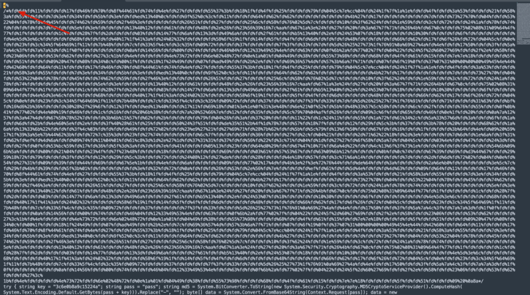 这样那就只能和后缀一样一点一点进行测试,这里使用二分法测试下到底是哪儿触发了waf的规则被拦截然后再想办法进行绕过。经过测试有三个点触发waf规则 1、:<%后面跟任何字母都不行(<%try-------)