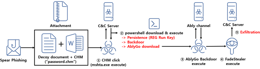 RedEyes(也称为 APT37、ScarCruft、Reaper)组织是一个国家支持的 APT 组织,主要针对个人,包括朝鲜叛逃者、人权活动家和大学教授。众所周知,他们的任务是监视某些人的日常生活。研究人员证实,2023 年 5 月,RedEyes 组织散布了滥用 Ably 平台的 Golang 后门,并使用了包括麦克风窃听功能在内的新的以前未知的信息泄露恶意软件。攻击者使用Ably服务将命令传递给Golang后门,并在Github资源库中存储了通信命令所需的API密钥值。API密钥值是与攻击者的频道通信所需的,任何知道密钥值的人都可以订阅。在这篇博客中,研究人员将分享RedEyes集团在2023年5月用来监视个人的TTP(战术、技术和程序),从最初的渗透技术到特权升级、指挥和控制以及渗出。