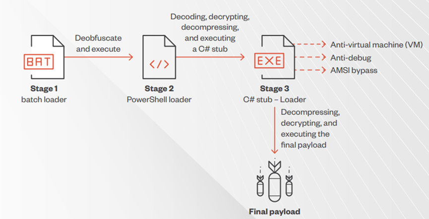 研究人员发现使用高级 BatCloak 引擎高度混淆的批处理文件在不同的实例中部署各种恶意软件。从 2022 年 9 月到 2023 年 6 月运行分析和样本收集,发现这些批处理文件被设计为完全不可检测 (FUD),并展示了持续规避安全解决方案的卓越能力。因此,威胁行为者可以通过无缝利用高度混淆的批处理文件来加载各种恶意软件系列和漏洞。