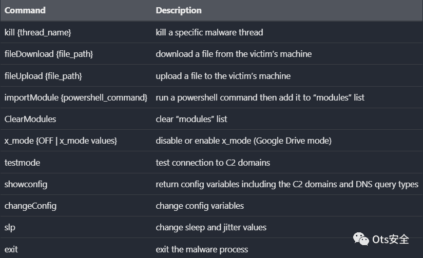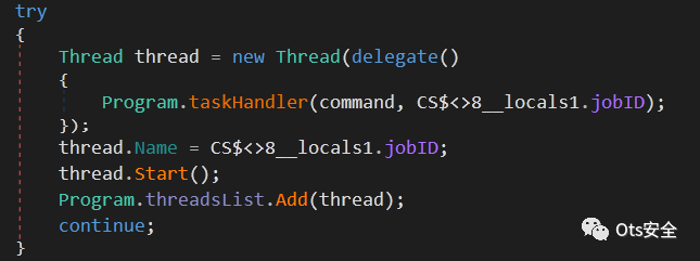 如果恶意软件收到一个新命令,它会启动一个新线程来执行它: