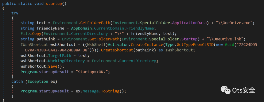 %APPDATA%\Microsoft\Windows\Start Menu\Programs\Startup\OneDrive.lnk(一种实现持久性但很容易检测到的方法)。