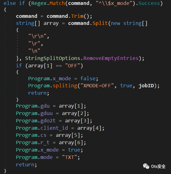 恶意软件每秒查询一次 C2 服务器,它使用这些正则表达式提取命令: