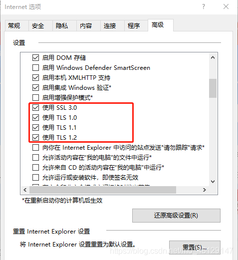 打开ie浏览器中的Internet选项,在高级中选中图中的这几个内容,点应用