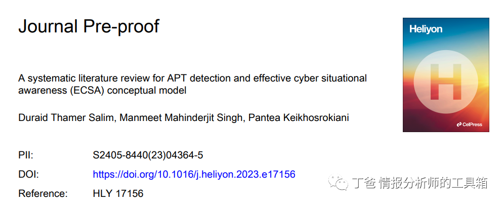 4、APT检测与有效网络态势感知(ECSA)概念模型的系统文献综述