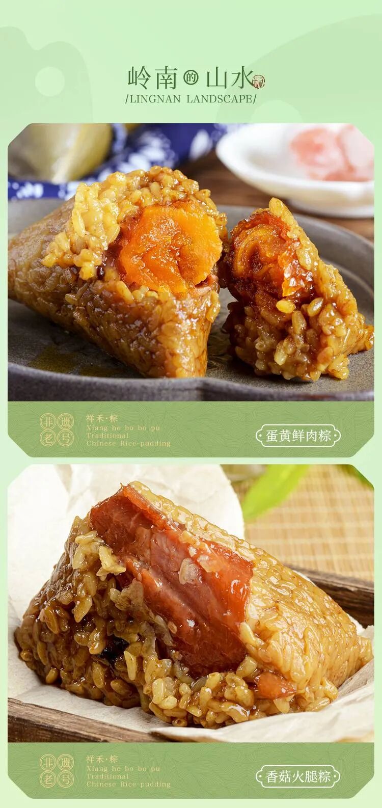 五花鲜肉粽:一口咬下肉汁四溢,五花肉与糯米的完美融合,超越你的想象肉香扑鼻,口感绵软,让你欲罢不能!每一口都是满满的幸福感,纯肉粽必须是它!红茶豆沙粽:农家“大红袍”红小豆,软糯的豆沙馅细腻、吃上一口就沦陷!软糯清香,细腻香甜!经典中的经典,永远都吃不腻!翻越岭南山川,为你带来这味流沙软糯的咸蛋黄,香菇和金华火腿肉的巧妙碰撞。蛋黄鲜肉粽:超有料的“肉粽”酱油糯米蒸出来的感觉,软软糯糯、粽子里的肉肥瘦相间。肥的入口即化爽滑不油腻,瘦肉软烂香浓、咸蛋黄油滋滋香喷喷,幸福感满满,我愿称之为咸蛋黄肉粽的天花板!香菇火腿粽:新鲜香菇与金华火腿肉的梦幻联动,感受田野间的清香。肉质紧实咸香,糯米黏黏糯糯超级入味、早餐吃一个饱腹感满满,开启幸福的一天~PS:临近节假日物流运力不稳定,时效无法保证,即刻下单让心意早点到~