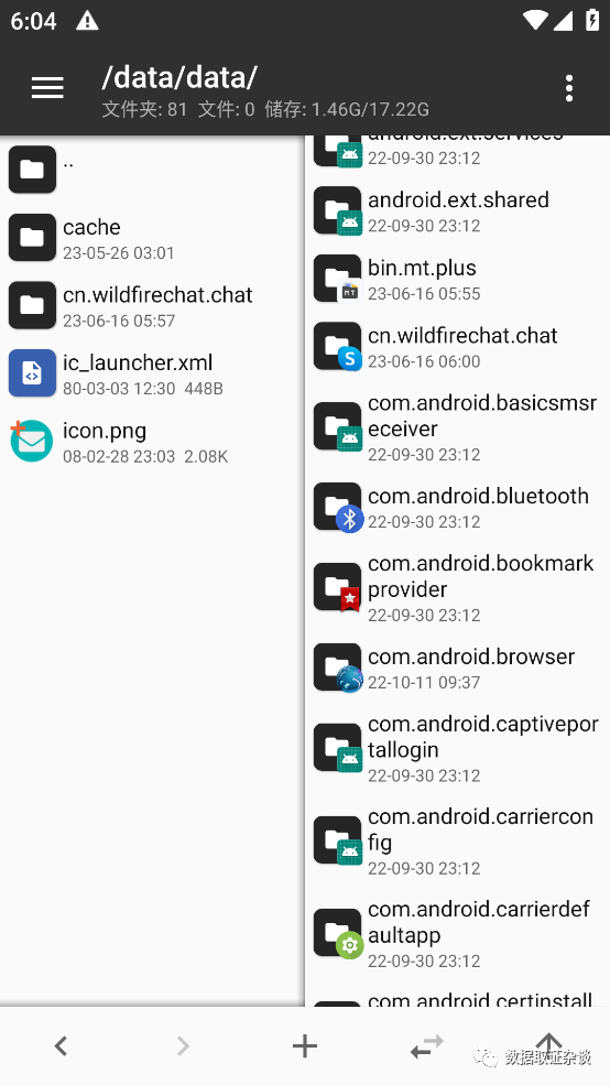 数据目录在\Bob手机\三星 SM-N9700\Image\data\data\cn.wildfirechat.chat
