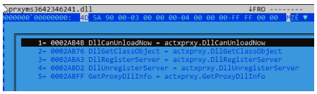 RomCom加载程序还通过使用转发的导出将对其导出函数的调用重定向到合法的actxprxy.dll。