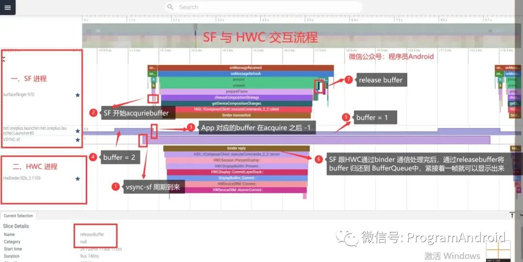 SF 跟HWC 通过binder 通信处理完后,通过rleasebuffer将buffer 归还到BufferQueue中,紧接着一帧就可以显示出来